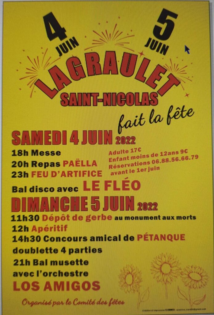Plus d’informations au près du comité des fêtes de Lagraulet-Saint-Nicolas et sur l’affiche suivante :