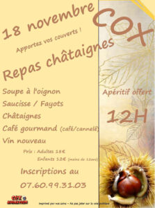 Des châtaignes rôties seront proposées en accompagnement.