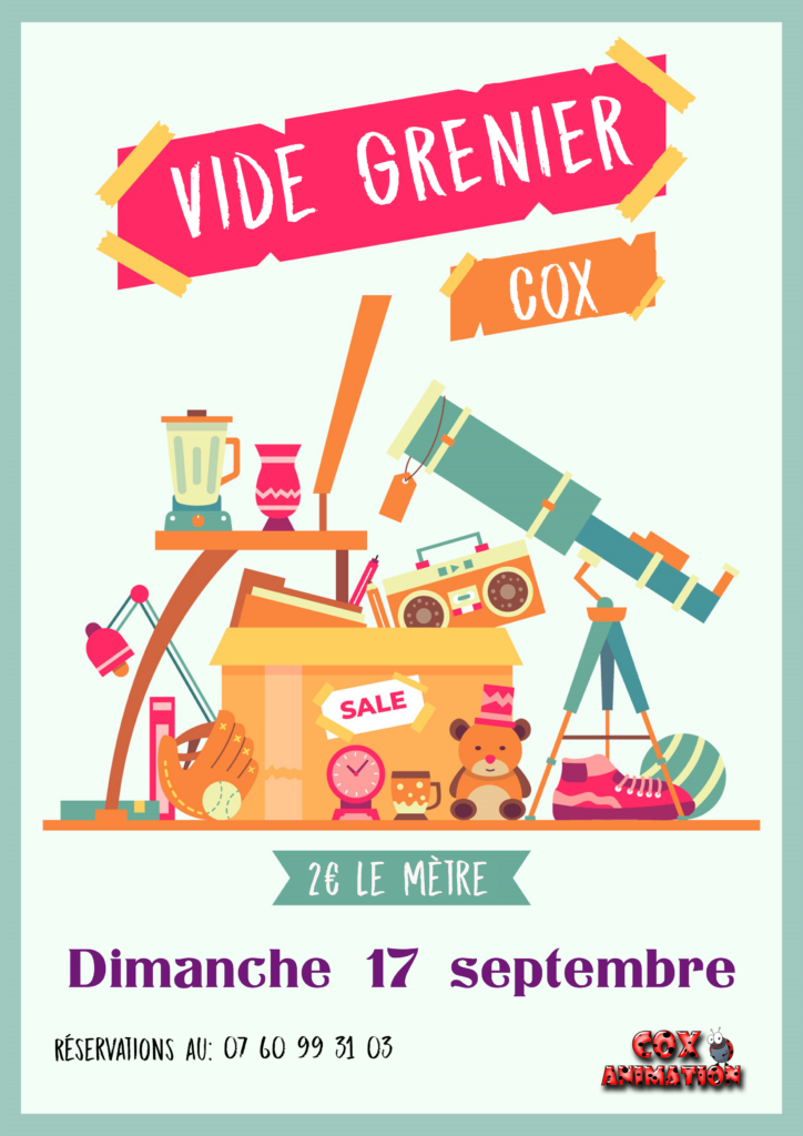 Que vous soyez à la recherche de trésors cachés, d’une pause gourmande, ou que vous souhaitiez simplement profiter de l’ambiance animée de Cox, notre vide-grenier a tout pour plaire. Ne manquez pas cet événement spécial et venez nous rejoindre le 17 Septembre à Cox. C’est l’occasion parfaite de passer une journée agréable en famille ou entre amis, de soutenir les exposants locaux et de célébrer notre patrimoine automobile.