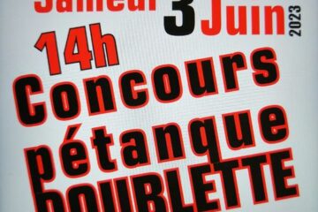 Concours de pétanqueConcours de pétanque en doublette à Laréole. Plus d’infos sur leur page Facebook. Par Cox Anim, il y a 3 ans14 mai 2023